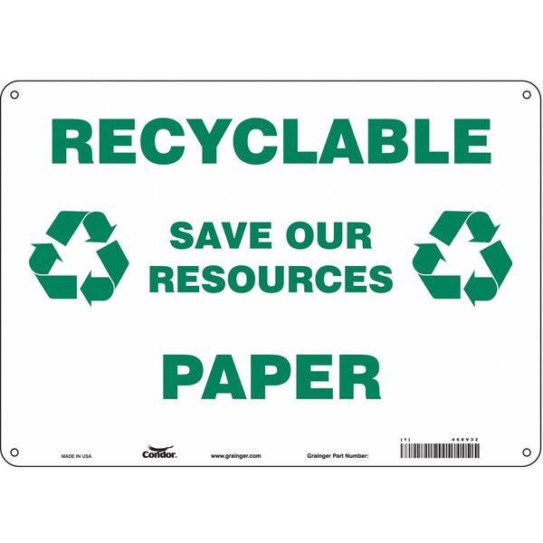 Safety Sign, 10 in Height, 14 in Width, Aluminum, Horizontal Rectangle, English, 468V32SKU G5216309Categories SafetyDescription Safety Sign, Horizontal Rectangle, Number of Printed Sides 1, English, Sign Format Other Format, Sign Legend Recyclable Save Our Resources Paper, Sign Legend Background Color White, Sign Legend Style Symbol and TextgraingerSKU: 468V32, mscSKU: , zoro_no: G5216309, mongo_id: 65bbe7463aaddbd5a908549c