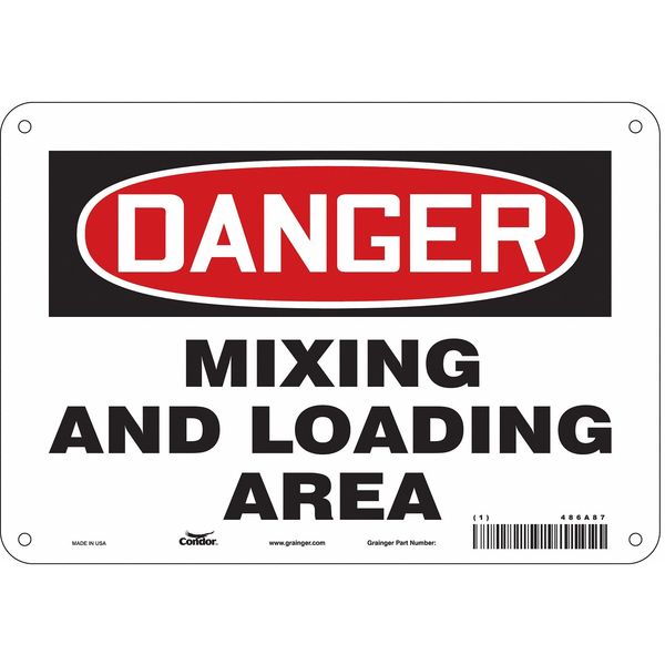 Safety Sign, 7 in Height, 10 in Width, Aluminum, Vertical Rectangle, English, 486A87SKU G6314660Categories SafetyDescription Safety Sign, Vertical Rectangle, Number of Printed Sides 1, English, Sign Format Traditional OSHA, Sign Legend Mixing And Loading Area, Sign Legend Background Color White, Sign Legend Style TextgraingerSKU: 486A87, mscSKU: , zoro_no: G6314660, mongo_id: 65bbe7463aaddbd5a90852f1