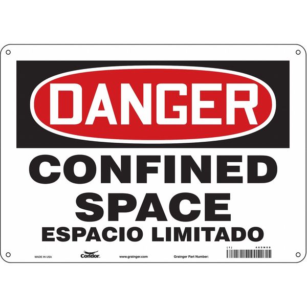 Safety Sign, 10" H, 14" W, Aluminum, 465N08SKU G5077410Categories SafetyDescription Safety Sign, Horizontal Rectangle, Number of Printed Sides 1, English, Spanish, Sign Format Traditional OSHA, Sign Legend Confined Space/ Espacio Limitado, Sign Legend Background Color White, Sign Legend Style TextgraingerSKU: 465N08, mscSKU: , zoro_no: G5077410, mongo_id: 65bbe7463aaddbd5a90853c7