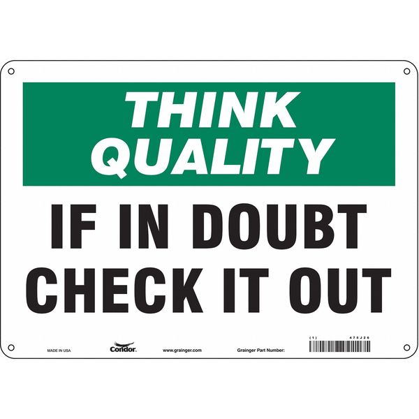 Safety Sign, 10 in Height, 14 in Width, Aluminum, Horizontal Rectangle, English, 475J26SKU G5776397Categories SafetyDescription Safety Sign, Horizontal Rectangle, Number of Printed Sides 1, English, Sign Format Other Format, Sign Legend If In Doubt Check It Out, Sign Legend Background Color Green, White, Sign Legend Style TextgraingerSKU: 475J26, mscSKU: , zoro_no: G5776397, mongo_id: 65bbe7379a749db822725bbd
