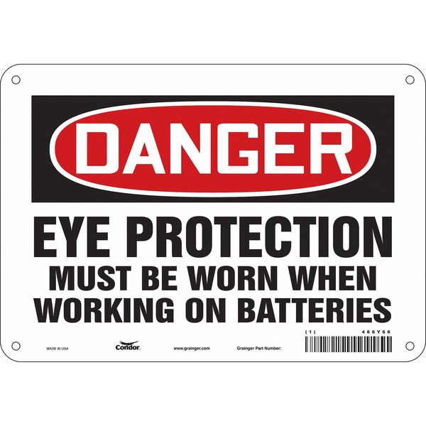 Safety Sign, 7 in Height, 10 in Width, Aluminum, Vertical Rectangle, English, 466Y66SKU G5888178Categories SafetyDescription Safety Sign, Vertical Rectangle, Number of Printed Sides 1, English, Sign Format Traditional OSHA, Sign Legend Eye Protection Must Be Worn When Working On Batteries, Sign Legend Background Color White, Sign Legend Style TextgraingerSKU: 466Y66, mscSKU: , zoro_no: G5888178, mongo_id: 65bbe7379a749db822725bbf