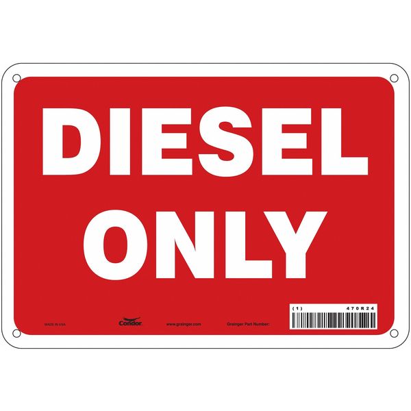 Safety Sign, 7 in Height, 10 in Width, Aluminum, Vertical Rectangle, English, 470R24SKU G5609033Categories SafetyDescription Safety Sign, Vertical Rectangle, Number of Printed Sides 1, English, Sign Format Other Format, Sign Legend Diesel Only, Sign Legend Background Color Red, Sign Legend Style TextgraingerSKU: 470R24, mscSKU: , zoro_no: G5609033, mongo_id: 65bbe7379a749db822725b37