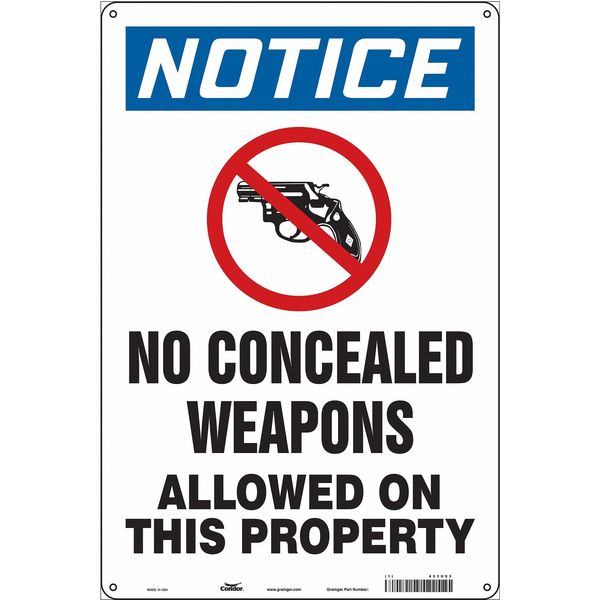 No Concealed Weapons Sign, 18 in H, 12 in W, Aluminum, Vertical Rectangle, English, 453U03SKU G5851513Categories SafetyDescription No Concealed Weapons Sign, Vertical Rectangle, Number of Printed Sides 1, English, Sign Legend No Firearms Allowed On Premises, Sign Legend Background Color White, Sign Legend Style Symbol and TextgraingerSKU: 453U03, mscSKU: , zoro_no: G5851513, mongo_id: 65bbe7379a749db822725a6d