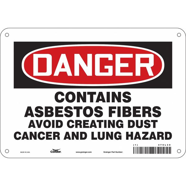 SKU G5787630Categories SafetyDescription Safety Sign, Vertical Rectangle, Number of Printed Sides 1, English, Sign Format Traditional OSHA, Sign Legend Contains Asbestos Fibers Avoid Creating Dust Cancer And Lung Hazard, Sign Legend Background Color White, Sign Legend Style TextgraingerSKU: 479L30, mscSKU: , zoro_no: G5787630, mongo_id: 65bbe7379a749db822725a8d