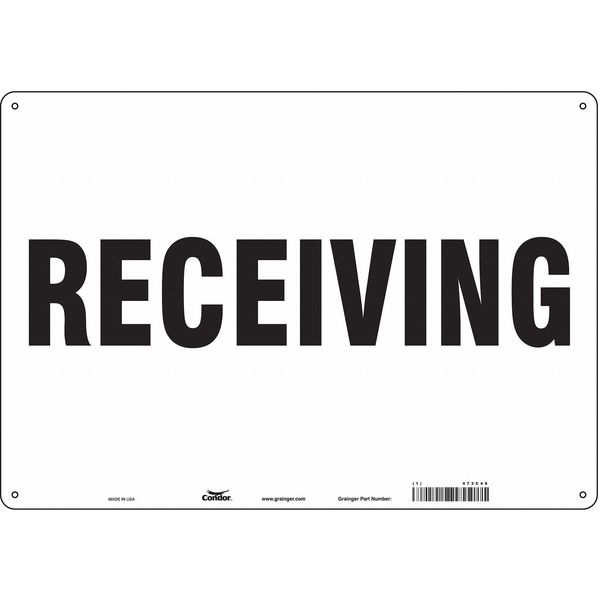 Safety Sign, 20" W, 14" H, 0.032" Thickness, 473C48SKU G5629911Categories SafetyDescription Safety Sign, Horizontal Rectangle, Number of Printed Sides 1, English, Sign Format Other Format, Sign Legend Receiving, Sign Legend Background Color White, Sign Legend Style TextgraingerSKU: 473C48, mscSKU: , zoro_no: G5629911, mongo_id: 65bbe7379a749db822725a82