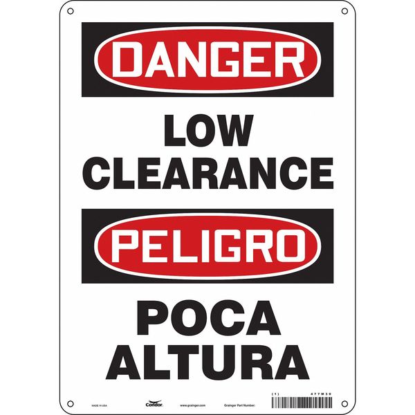 SKU G5847018Categories SafetyDescription Safety Sign, Vertical Rectangle, Number of Printed Sides 1, English, Spanish, Sign Format Traditional OSHA, Sign Legend Low Clearance/Poca Altura, Sign Legend Background Color White, Sign Legend Style TextgraingerSKU: 477M30, mscSKU: , zoro_no: G5847018, mongo_id: 65bbe7379a749db822725a5a