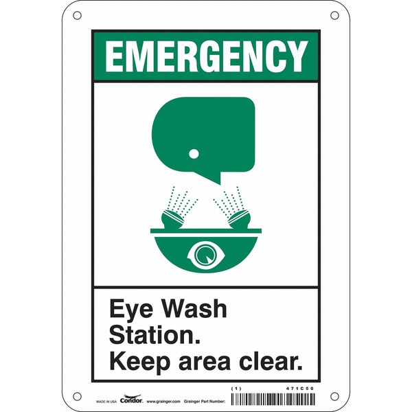 Safety Sign, 10 in Height, 7 in Width, Polyethylene, Horizontal Rectangle, EnglishSKU G5058398Categories SafetyDescription Safety Sign, Horizontal Rectangle, Number of Printed Sides 1, English, Sign Legend Eye Wash Station. Keep Area Clear., Sign Legend Background Color Green, White, Sign Legend Style Symbol and TextgraingerSKU: 471C50, mscSKU: , zoro_no: G5058398, mongo_id: 65bbe7379a749db822725a31