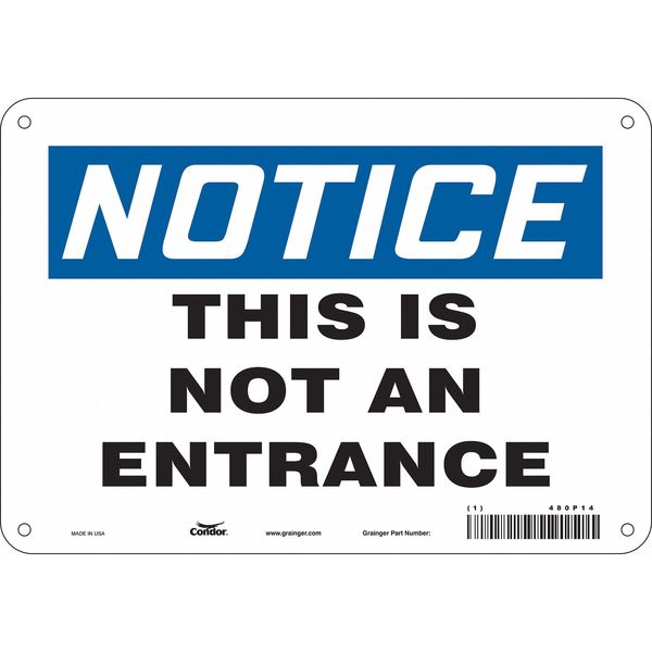 Safety Sign, 7 in Height, 10 in Width, Aluminum, Vertical Rectangle, English, 480P14SKU G5826587Categories SafetyDescription Safety Sign, Vertical Rectangle, Number of Printed Sides 1, English, Sign Legend This Is Not An Entrance, Sign Legend Background Color White, Sign Legend Style TextgraingerSKU: 480P14, mscSKU: , zoro_no: G5826587, mongo_id: 65bbe7379a749db822725952