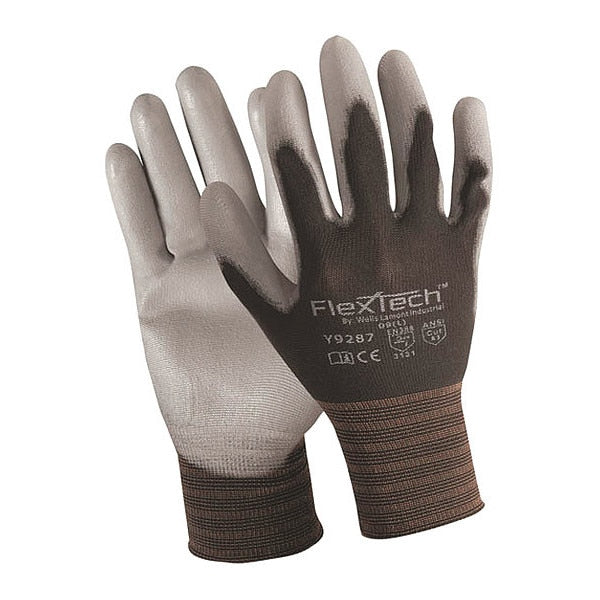 Polyurethane Coated Gloves, Palm Coverage, Black/Gray, L, PR