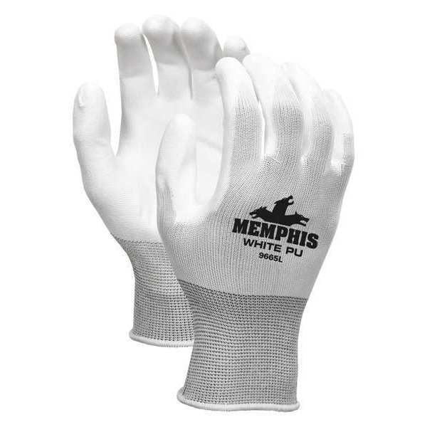 Polyurethane Coated Gloves, Palm Coverage, White, XL, PR