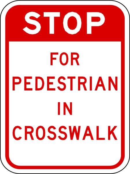 Stop For Pedestrians In Crosswalk Sign, 18" W, 24" H, English, Aluminum, Red, White