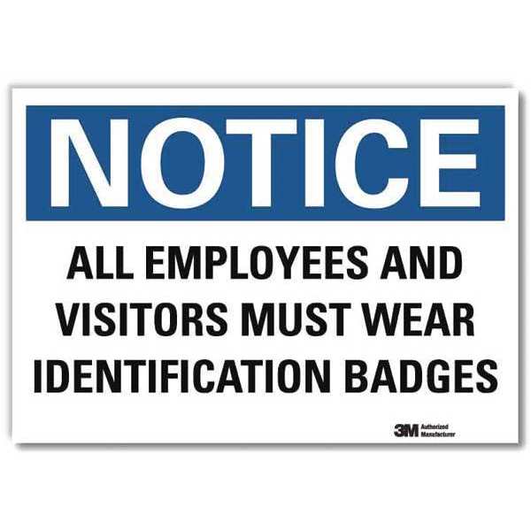 Notice Sign, 7 in H, 10 in W, Reflective Sheeting, Vertical Rectangle, English, U5-1045-RD_10X7SKU G2765336Categories SafetyDescription Notice Sign, Vertical Rectangle, Number of Printed Sides 1, English, Sign Legend All Employees And Visitors Must Wear Identification Badges, Sign Legend Background Color White, Sign Legend Style TextgraingerSKU: 34JH28, mscSKU: , zoro_no: G2765336, mongo_id: 65bbe7379a749db822725749