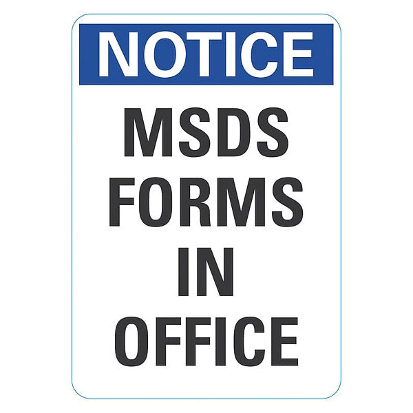 SKU G2760567Categories SafetyDescription Notice Sign, Vertical Rectangle, Number of Printed Sides 1, English, Sign Format Traditional OSHA, Sign Legend Msds Forms In Office, Sign Legend Background Color White, Sign Legend Style TextgraingerSKU: 34JR40, mscSKU: , zoro_no: G2760567, mongo_id: 65bbe7379a749db822725613
