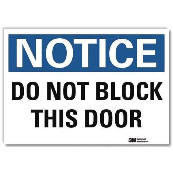 Notice Sign, 5 in H, 7 in W, Reflective Sheeting, Horizontal Rectangle, English, U5-1125-RD_7X5SKU G2280297Categories SafetyDescription Notice Sign, Horizontal Rectangle, Number of Printed Sides 1, English, Sign Legend Do Not Block This Door, Sign Legend Background Color White, Sign Legend Style TextgraingerSKU: 34JK17, mscSKU: , zoro_no: G2280297, mongo_id: 65bbe7379a749db8227255b8