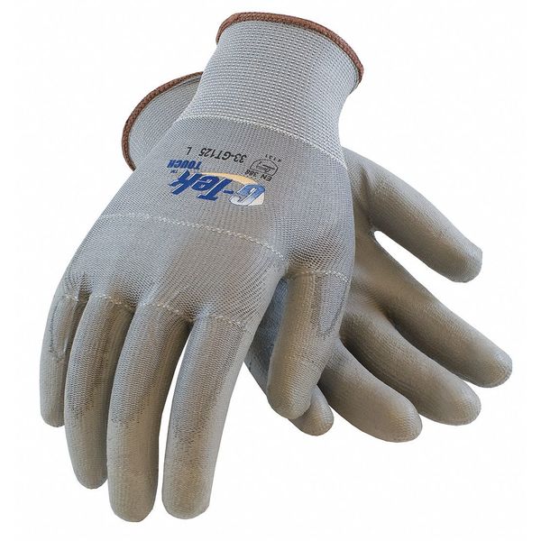 Polyurethane Coated Gloves, Palm Coverage, Gray, S, 12PK