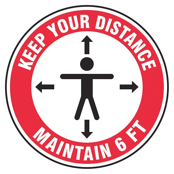 Floor Sign, 17 in H, 17 in W, Vinyl, English, MFS347SKU G7660162Categories SafetyDescription Printed Language English, Sign Header No Header, Sign Legend Keep Your Distance Maintain 6 Ft Human Symbol$28.56 / eachWeb price -