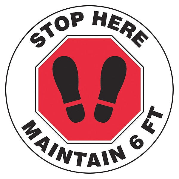 Floor Sign, 17 in H, 17 in W, Vinyl, English, MFS390SKU G7660038Categories SafetyDescription Printed Language English, Sign Header No Header, Sign Legend Stop Here Maintain 6 Ft Stop Sign Feet Symbol$28.56 / eachWeb price -
