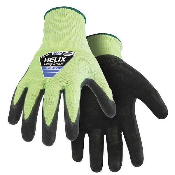 Hi-Vis Cut Resistant Coated Gloves, A9 Cut Level, Polyurethane, XS, 1 PR