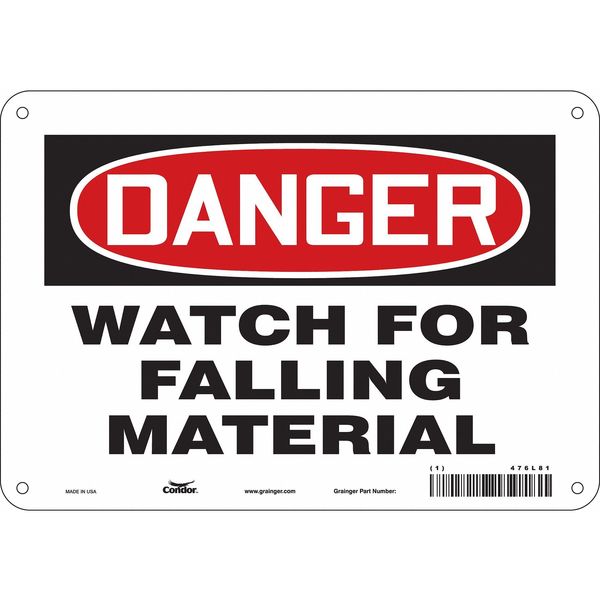 $18.74 / eachWeb priceSafety Sign, 7 in Height, 10 in Width, Aluminum, Vertical Rectangle, English, 476L81SKU G5769753Categories SafetyDescription Safety Sign, Vertical Rectangle, Number of Printed Sides 1, English, Sign Format Traditional OSHA, Sign Legend Watch For Falling Material, Sign Legend Background Color White, Sign Legend Style TextgraingerSKU: 476L81, mscSKU: , zoro_no: G5769753, mongo_id: 65bbe83422d7a989a98dfa56
