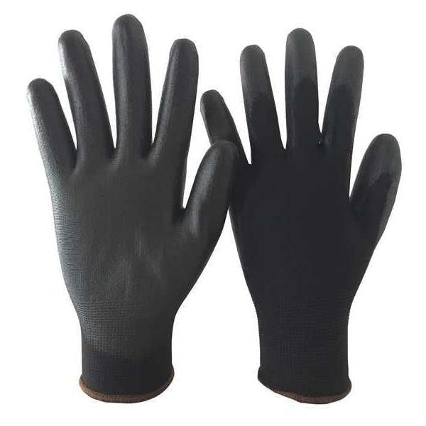 Polyurethane Coated Gloves, Palm Coverage, Black, M, PR
