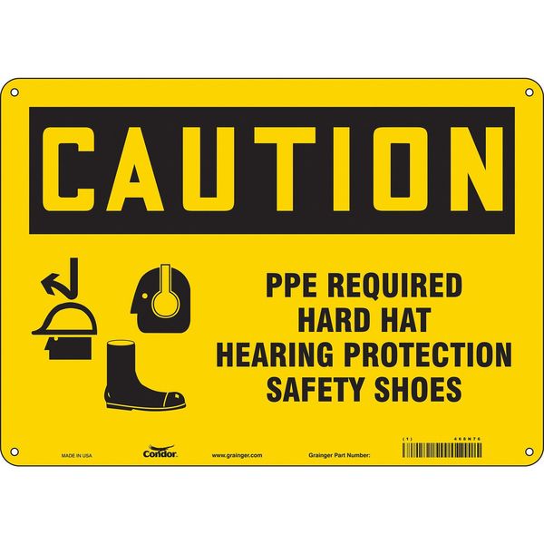 Safety Sign, 10 in Height, 14 in Width, Aluminum, Horizontal Rectangle, English, 468N76SKU G5615220Categories SafetyDescription Safety Sign, Horizontal Rectangle, Number of Printed Sides 1, English, Sign Format Traditional OSHA, Sign Legend Ppe Required Hard Hat Hearing Protection Safety Shoes, Sign Legend Background Color Yellow, Sign Legend Style Symbol and TextgraingerSKU: 468N76, mscSKU: , zoro_no: G5615220, mongo_id: 65bbee2b526e052139af2fef