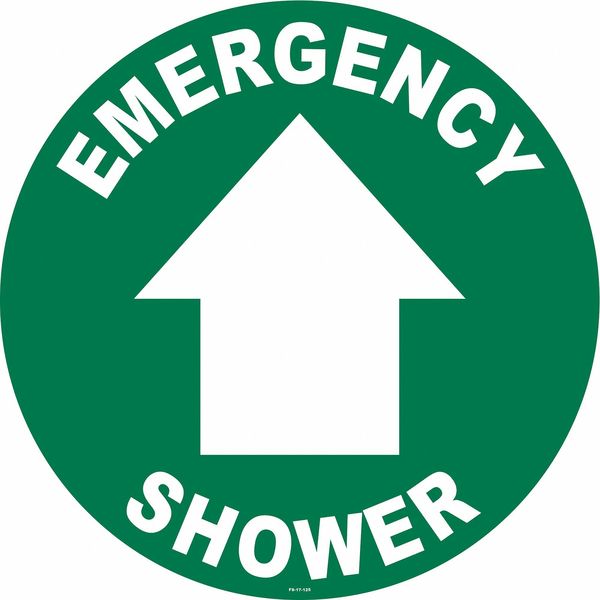 Floor Sign, 17 in H, 17 in W, Vinyl, Circle, English, FS-17-125SKU G6248748Categories SafetyDescription Floor Sign, Circle, Number of Printed Sides 1, English, Sign Format Other Format, Sign Legend Emergency Shower, Sign Legend Background Color Green, Sign Legend Style Symbol and Text, Sign Legend Character Height 1 3/4 ingraingerSKU: 467F53, mscSKU: , zoro_no: G6248748, mongo_id: 65bbee2b526e052139af32b7