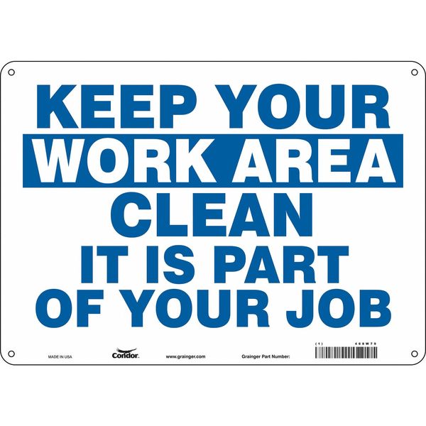 Safety Sign, 10 in Height, 14 in Width, Aluminum, Horizontal Rectangle, English, 468W79SKU G5214610Categories SafetyDescription Safety Sign, Horizontal Rectangle, Number of Printed Sides 1, English, Sign Legend Keep Your Work Area Clean It Is Part Of Your Job, Sign Legend Background Color Blue, White, Sign Legend Style TextgraingerSKU: 468W79, mscSKU: , zoro_no: G5214610, mongo_id: 65bbee2b526e052139af2f47
