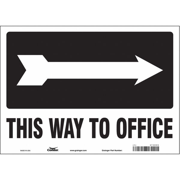 Safety Sign, 10 in Height, 14 in Width, Vinyl, Horizontal Rectangle, English, 473D06SKU G5535369Categories SafetyDescription Safety Sign, Horizontal Rectangle, Number of Printed Sides 1, English, Sign Format Other Format, Sign Legend This Way To Office (Right Arrow), Sign Legend Background Color White, Sign Legend Style Symbol and TextgraingerSKU: 473D06, mscSKU: , zoro_no: G5535369, mongo_id: 65bbee2b526e052139af2f5b