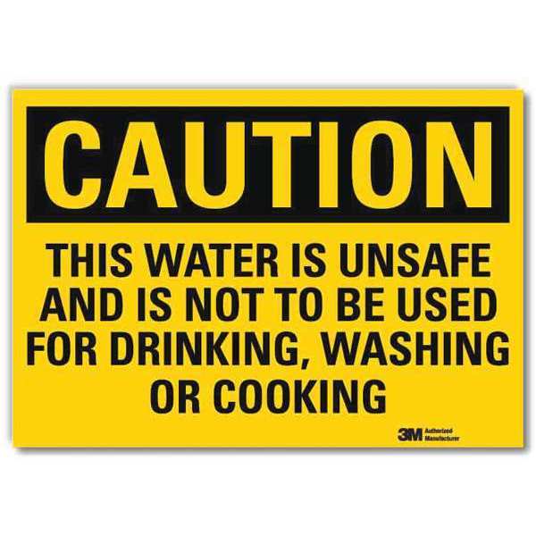 SKU G2717830Categories SafetyDescription Safety Sign, Horizontal Rectangle, Number of Printed Sides 1, English, Sign Format Traditional OSHA, Sign Legend This Water Is Unsafe And Is Not To Be Used For Drinking, Washing Or Cooking, Sign Legend Background Color Yellow, Sign Legend Style Text$3.11 / eachWeb price