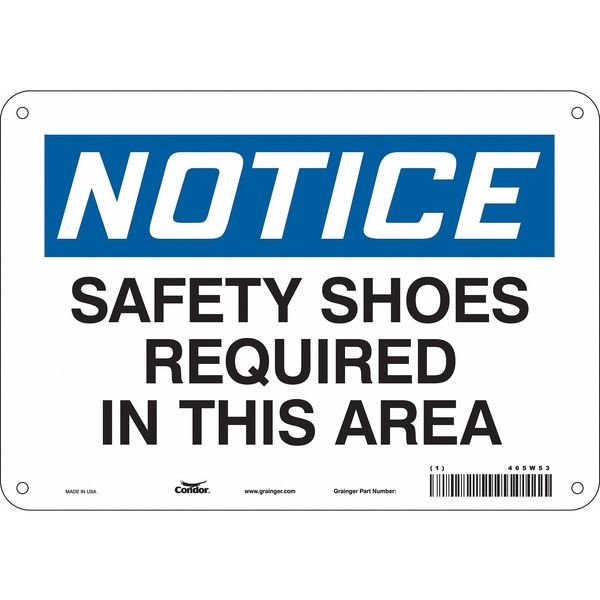Safety Sign, 7 in Height, 10 in Width, Aluminum, Vertical Rectangle, English, 465W53SKU G5614782Categories SafetyDescription Safety Sign, Vertical Rectangle, Number of Printed Sides 1, English, Sign Format Traditional OSHA, Sign Legend Safety Shoes Required In This Area, Sign Legend Background Color White, Sign Legend Style TextgraingerSKU: 465W53, mscSKU: , zoro_no: G5614782, mongo_id: 65bbee06526e052139ae4a9b