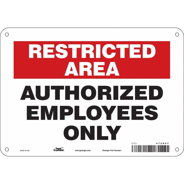 Safety Sign, 7 in Height, 10 in Width, Aluminum, Vertical Rectangle, English, 472G07SKU G5504858Categories SafetyDescription Safety Sign, Vertical Rectangle, Number of Printed Sides 1, English, Sign Format Other Format, Sign Legend Authorized Employees Only, Sign Legend Background Color Red, White, Sign Legend Style TextgraingerSKU: 472G07, mscSKU: , zoro_no: G5504858, mongo_id: 65bbee06526e052139ae4b5e