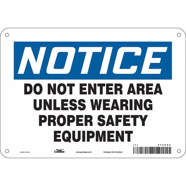 Safety Sign, 7 in Height, 10 in Width, Aluminum, Vertical Rectangle, English, 472U82SKU G5164439Categories SafetyDescription Safety Sign, Vertical Rectangle, Number of Printed Sides 1, English, Sign Format Traditional OSHA, Sign Legend Do Not Enter Area Unless Wearing Proper Safety Equipment, Sign Legend Background Color White, Sign Legend Style TextgraingerSKU: 472U82, mscSKU: , zoro_no: G5164439, mongo_id: 65bbee06526e052139ae4b13