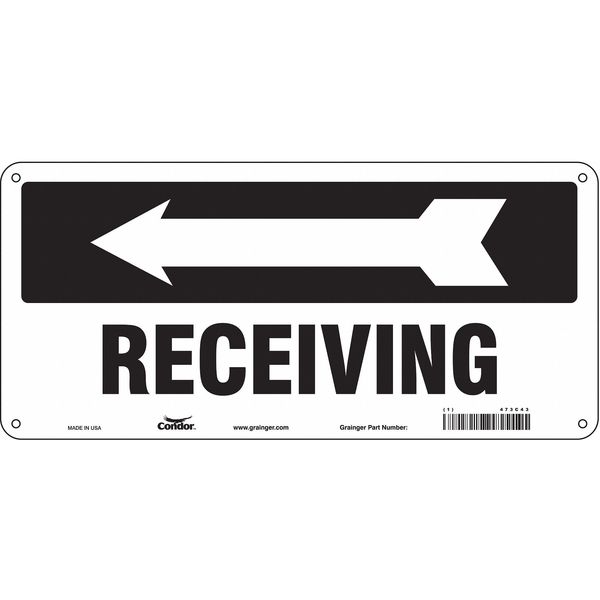 Safety Sign, 14" W, 6-1/2" H, 0.032" Thick, 473C43SKU G5565198Categories SafetyDescription Safety Sign, Vertical Rectangle, Number of Printed Sides 1, English, Sign Format Other Format, Sign Legend Receiving (Left Arrow), Sign Legend Background Color White, Sign Legend Style Symbol and TextgraingerSKU: 473C43, mscSKU: , zoro_no: G5565198, mongo_id: 65bbee06526e052139ae4a7a