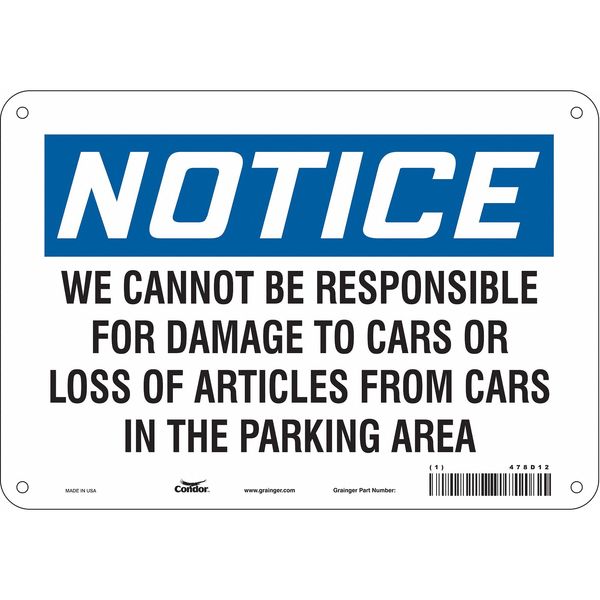 Parking Lot Damage Sign, 7" x 10, 478D12SKU G5867178Categories SafetyDescription Parking Lot Damage & Theft Advisory Parking Sign, Height 7 in, Width 10 in, Sign Material Aluminum, Sign Mounting Style Mounting Holes, Printed Language English, Sign Shape Horizontal RectanglegraingerSKU: 478D12, mscSKU: , zoro_no: G5867178, mongo_id: 65bbee06526e052139ae4ab4