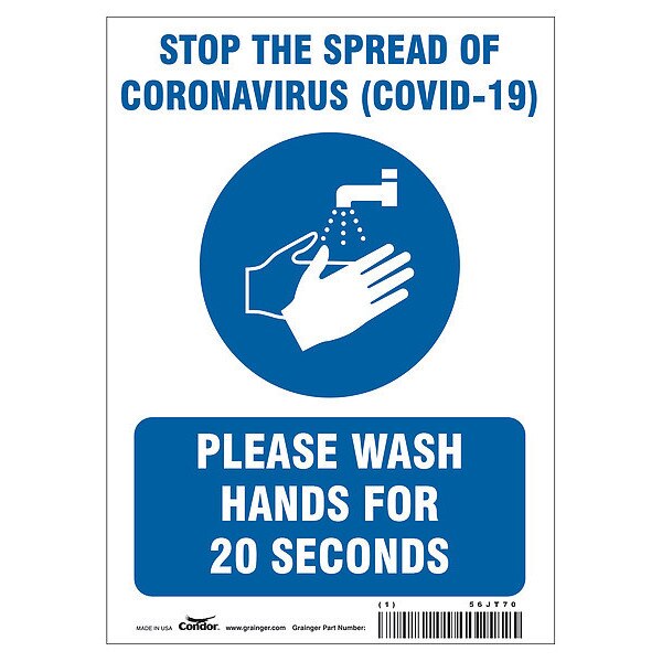 SKU G6619987Categories SafetyDescription Stop The Spread Of Coronavirus Sign, Sign Subject Matter Coronavirus Prevention, Height 10 in, Width 7 in, Sign Material Polystyrene, Sign Mounting Style With Mounting Holes, Header No Header, Legend Stop The Spread Of Coronavirus (COVID-19) Please Wash Hands For 20 Seconds, Printed Language English, Sign Shape Rectangle$7.06 / eachWeb price