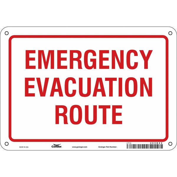 Safety Sign, 7 in Height, 10 in Width, Aluminum, Vertical Rectangle, English, 465R22SKU G5581173Categories SafetyDescription Safety Sign, Vertical Rectangle, Number of Printed Sides 1, English, Sign Format Other Format, Sign Legend Emergency Evacuation Route, Sign Legend Background Color White, Sign Legend Style TextgraingerSKU: 465R22, mscSKU: , zoro_no: G5581173, mongo_id: 65bbee06526e052139ae4b22