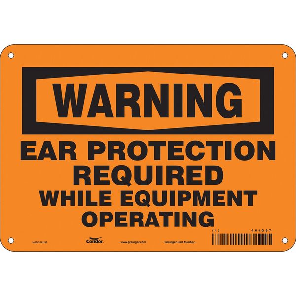 SKU G5812368Categories SafetyDescription Safety Sign, Vertical Rectangle, Number of Printed Sides 1, English, Sign Format Traditional OSHA, Sign Legend Ear Protection Required While Equipment Operating, Sign Legend Background Color Orange, Sign Legend Style TextgraingerSKU: 466G97, mscSKU: , zoro_no: G5812368, mongo_id: 65bbee06526e052139ae4a31