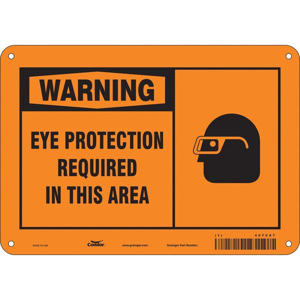Safety Sign, 7 in Height, 10 in Width, Aluminum, Vertical Rectangle, English, 467C67SKU G5223823Categories SafetyDescription Safety Sign, Vertical Rectangle, Number of Printed Sides 1, English, Sign Format Traditional OSHA, Sign Legend Eye Protection Required In This Area, Sign Legend Background Color Orange, Sign Legend Style Symbol and TextgraingerSKU: 467C67, mscSKU: , zoro_no: G5223823, mongo_id: 65bbee06526e052139ae4b15