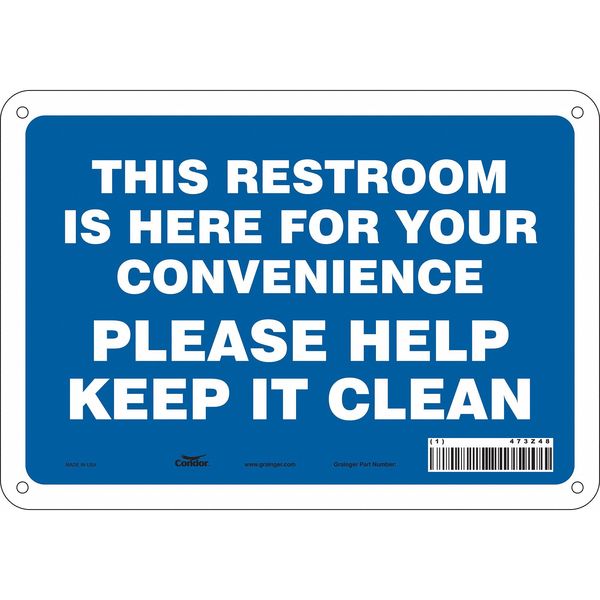 SKU G5617217Categories SafetyDescription Restroom Sign, Vertical Rectangle, Number of Printed Sides 1, English, Sign Legend This Restroom Is Here For Your Convenience Please Help Keep It Clean, Sign Legend Background Color Blue, White, Sign Legend Style TextgraingerSKU: 473Z48, mscSKU: , zoro_no: G5617217, mongo_id: 65bbe83422d7a989a98df9fe