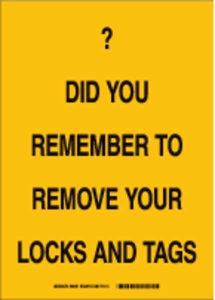 SKU G2308376Categories SafetyDescription Lockout Sign, Sign Subject Matter Lockout Tagout, Height 10 in, Width 7 in, Sign Material Fiberglass, Sign Mounting Style With Mounting Holes, Header No Header, Legend ? Did You Remember To Remove Your Locks And Tags, Printed Language English, Sign Shape Rectangle$29.61 / eachWeb priceLockout Sign, 10 in Height, 7 in Width, Fiberglass, Rectangle, EnglishSKU G2308376Categories SafetyDescription Lockout Sign, Sign Subject Matter Lockout Tagout, Height 10 in, Width 7 in, Sign Material Fiberglass, Sign Mounting Style With Mounting Holes, Header No Header, Legend ? Did You Remember To Remove Your Locks And Tags, Printed Language English, Sign Shape Rectangle$29.61 / eachWeb price -