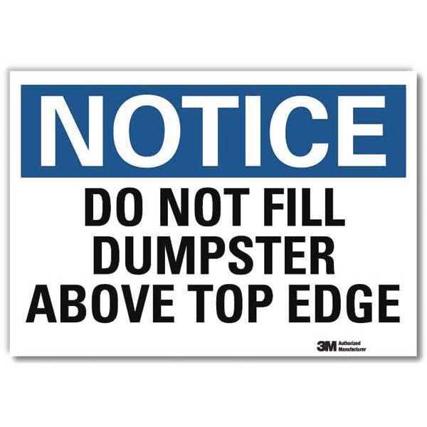 SKU G2763796Categories SafetyDescription Notice Sign, Horizontal Rectangle, Number of Printed Sides 1, English, Sign Format Traditional OSHA, Sign Legend Do Not Fill Dumpster Above Top Edge, Sign Legend Background Color White, Sign Legend Style TextgraingerSKU: 34JK52, mscSKU: , zoro_no: G2763796, mongo_id: 65bbee06526e052139ae4566