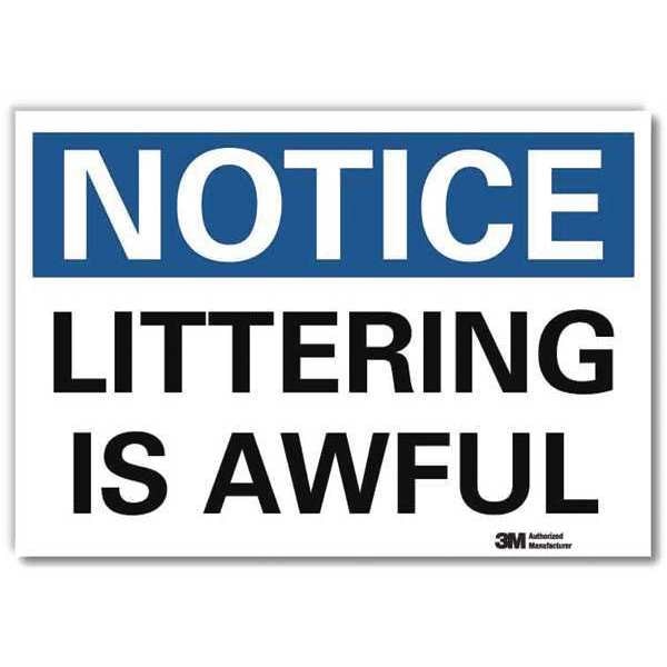 SKU G2760908Categories SafetyDescription Notice Sign, Horizontal Rectangle, Number of Printed Sides 1, English, Sign Format Traditional OSHA, Sign Legend Littering Is Awful, Sign Legend Background Color White, Sign Legend Style TextgraingerSKU: 34JP85, mscSKU: , zoro_no: G2760908, mongo_id: 65bbee06526e052139ae4495