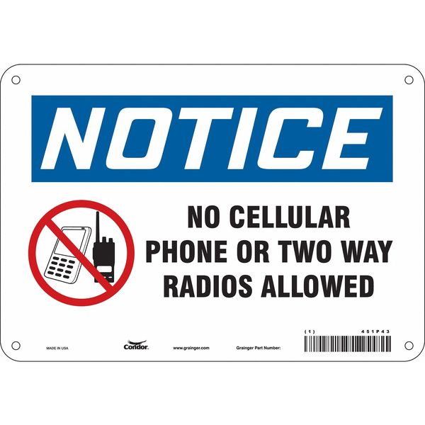 Safety Sign Cell Phone, 7 in H, 10 in W, Aluminum, Vertical Rectangle, English, 451P43SKU G5835109Categories SafetyDescription Safety Sign Cell Phone, Vertical Rectangle, Number of Printed Sides 1, English, Sign Legend No Cellular Phone Or Two Way Radios Allowed, Sign Legend Background Color White, Sign Legend Style Symbol and TextgraingerSKU: 451P43, mscSKU: , zoro_no: G5835109, mongo_id: 65bbea5222d7a989a99a871b