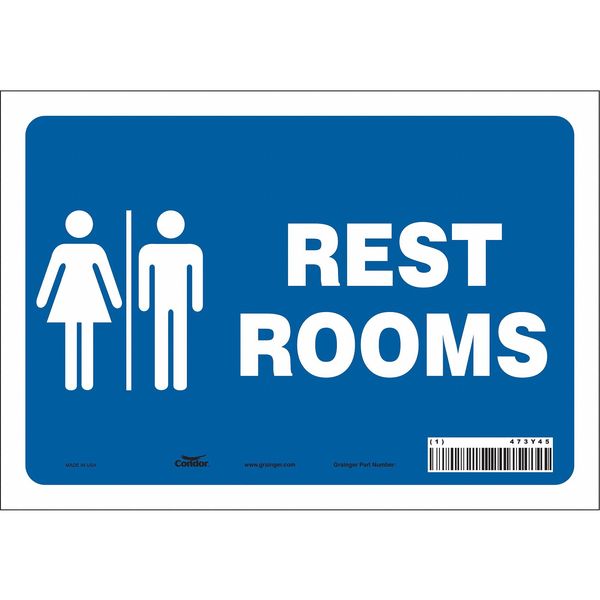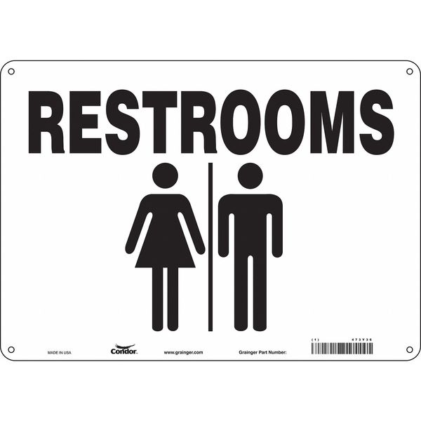 Restroom Sign, 14" W, 10" H, 0.032" Thick, 473Y36