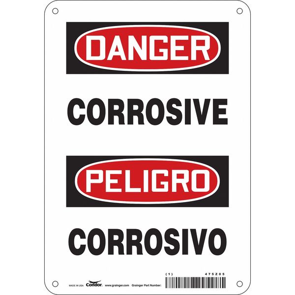 Chemical Sign, 10 in H, 7 in W, Horizontal Rectangle, English, Spanish, 475Z05SKU G5811869Categories SafetyDescription Chemical Sign, Horizontal Rectangle, Number of Printed Sides 1, English, Spanish, Sign Format Traditional OSHA, Sign Legend Corrosive/Corrosivo, Sign Legend Background Color White, Sign Legend Style TextgraingerSKU: 475Z05, mscSKU: , zoro_no: G5811869, mongo_id: 65bbea5222d7a989a99a8848