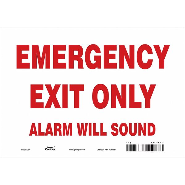 Safety Sign, 7 in x 10 in, VinylSKU G5530012Categories SafetyDescription Safety Sign Emergency Exit, Vertical Rectangle, Number of Printed Sides 1, English, Sign Legend Emergency Exit Only Alarm Will Sound, Sign Legend Background Color White, Sign Legend Style TextgraingerSKU: 467R93, mscSKU: , zoro_no: G5530012, mongo_id: 65bbea5222d7a989a99a86da