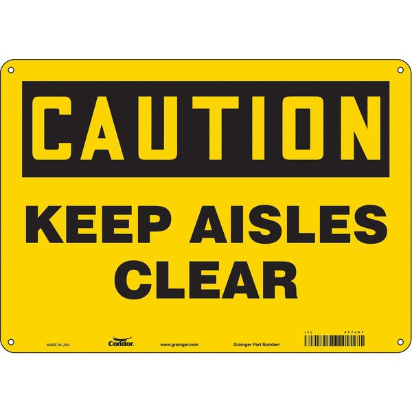 SKU G5890899Categories SafetyDescription Safety Sign, Horizontal Rectangle, Number of Printed Sides 1, English, Sign Format Traditional OSHA, Sign Legend Keep Aisles Clear, Sign Legend Background Color Yellow, Sign Legend Style TextgraingerSKU: 477J61, mscSKU: , zoro_no: G5890899, mongo_id: 65bbea5222d7a989a99a87ab