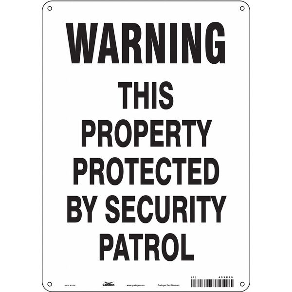 Security Sign, 14 in H, 10 in W, Aluminum, Vertical Rectangle, English, 453R85SKU G5262113Categories SafetyDescription Security Sign, Vertical Rectangle, Number of Printed Sides 1, English, Sign Format Other Format, Sign Legend Warning This Property Protected By Security Patrol, Sign Legend Background Color White, Sign Legend Style TextgraingerSKU: 453R85, mscSKU: , zoro_no: G5262113, mongo_id: 65bbea5222d7a989a99a86cc