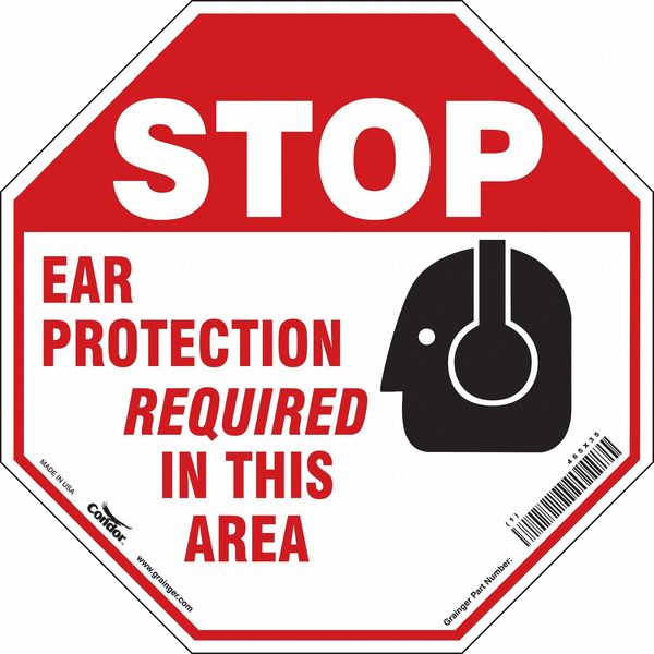 SKU G5609313Categories SafetyDescription Safety Sign, Octagon, Number of Printed Sides 1, English, Sign Format Other Format, Sign Legend Stop Ear Protection Required In This Area, Sign Legend Background Color Red, White, Sign Legend Style Symbol and TextgraingerSKU: 465X35, mscSKU: , zoro_no: G5609313, mongo_id: 65bbea5222d7a989a99a861c