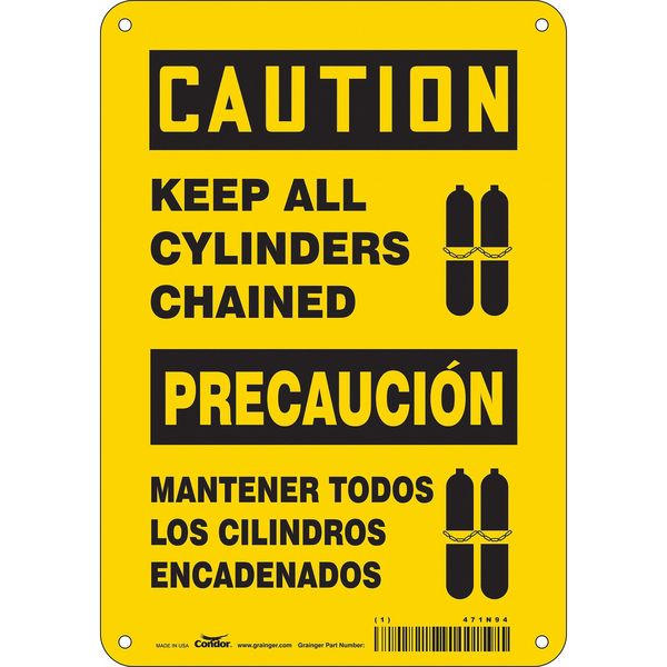 Safety Sign, 10 in Height, 7 in Width, Aluminum, Horizontal Rectangle, English, Spanish, 471N94SKU G5638917Categories SafetyDescription Safety Sign, Horizontal Rectangle, Number of Printed Sides 1, English, Spanish, Sign Format Traditional OSHA, Sign Legend Keep All Cylinders Chained/Mantener Todos Los Cilindros Encadenados, Sign Legend Background Color Yellow, Sign Legend Style Symbol and TextgraingerSKU: 471N94, mscSKU: , zoro_no: G5638917, mongo_id: 65bbea5222d7a989a99a8602